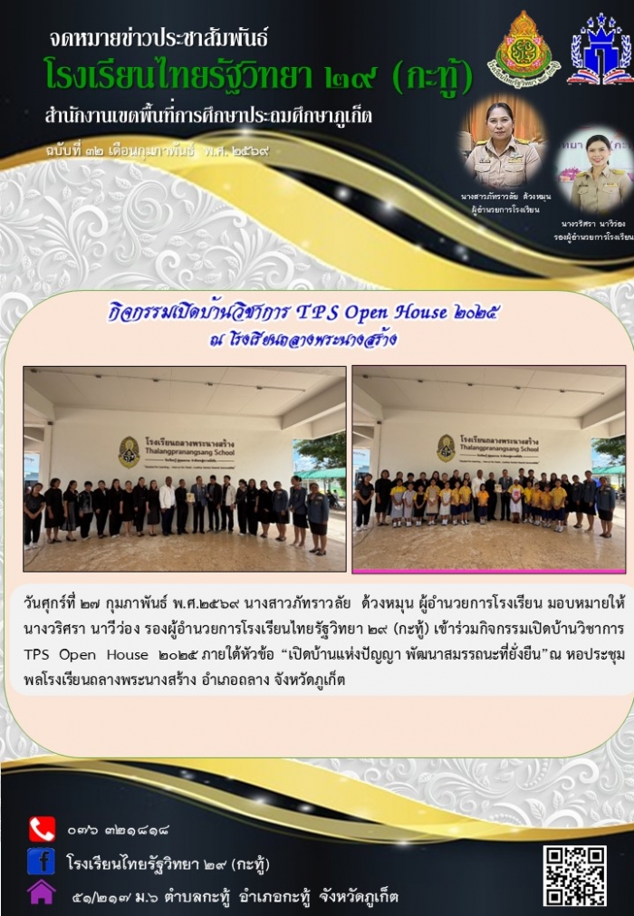 รอง สพป.ภูเก็ต เป็นประธานเปิดงาน เปิดบ้านวิชาการ (TK Open House) ณ โรงเรียนบ้านทุ่งคา บุณยขจรประชาอาสา