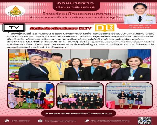 โรงเรียนบ้านแหลมทราย เข้าร่วมการคัดเลือกโรงเรียนต้นแบบการพัฒนาคุณภาพการศึกษาด้วยเทคโนโลยีการศึกษาทางไกลผ่านดาวเทียม (Distanee Learning television : D