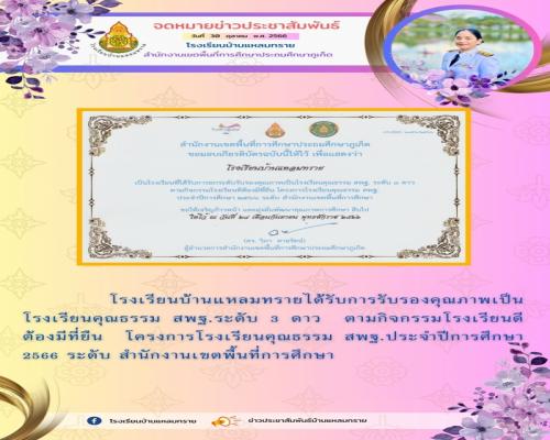 ได้รับรางวัลการยกระดับรับรองคุณภาพเป็นโรงเรียนคุณธรรม สพฐ. 3 ดาว