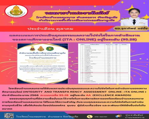 ผลคะเเนนการประเมินคุณธรรมแลความโปร่งใสในการดำเนินงาน ของสถานศึกษาออนไลน์ (ITA : ONLINE))