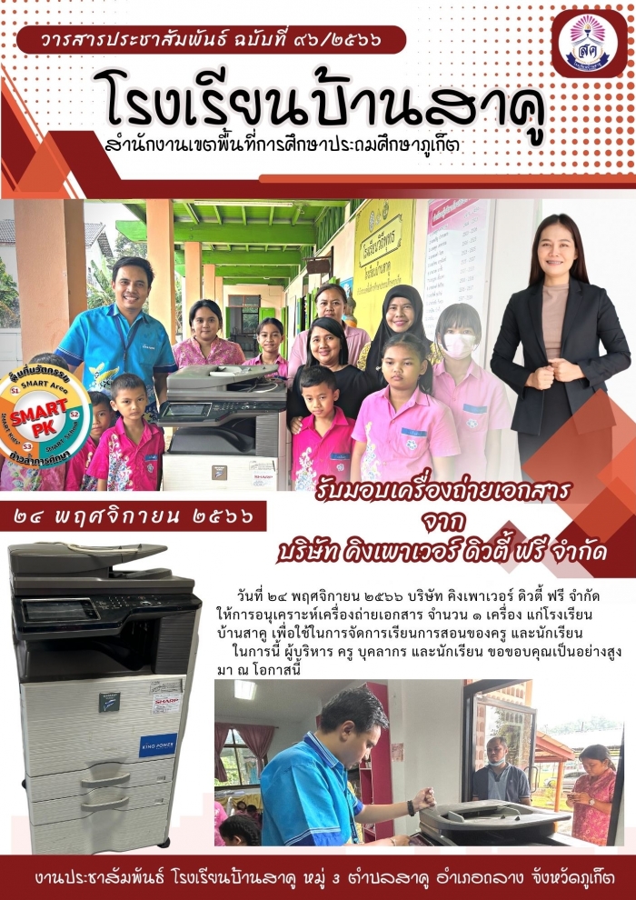 รับมอบเครื่องถ่ายเอกสาร จาก บริษัท คิงเพาเวอร์ ดิวตี้ฟรี จำกัด