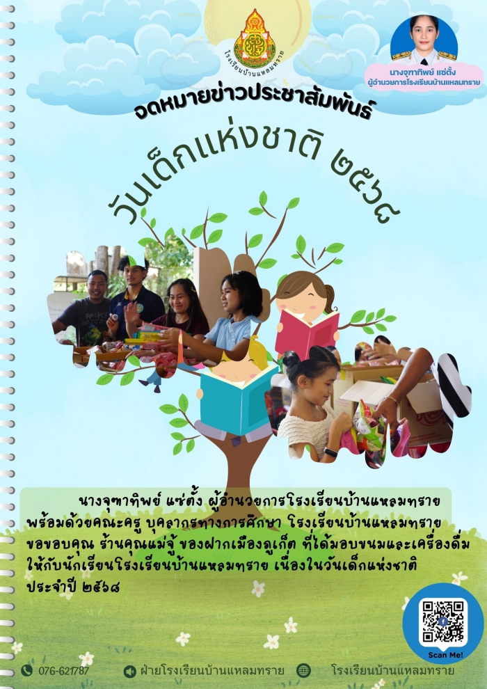 นางจุฑาทิพย์ แซ่ตั้ง ผู้อำนวยการโรงเรียนบ้านแหลมทราย พร้อมด้วยคณะครู บุคลากรทางการศึกษา โรงเรียนบ้านแหลมทรายขอขอบคุณ ร้านคุณแม่จู้ ของฝากเมืองภูเก็ต ที่ได้มอบขนมและเครื่องดื่ม ให้กับนักเรียนโรงเรียนบ้านแหลมทราย เนื่องในวันเด็กแห่งชาติ ประจำปี ๒๕๖๘