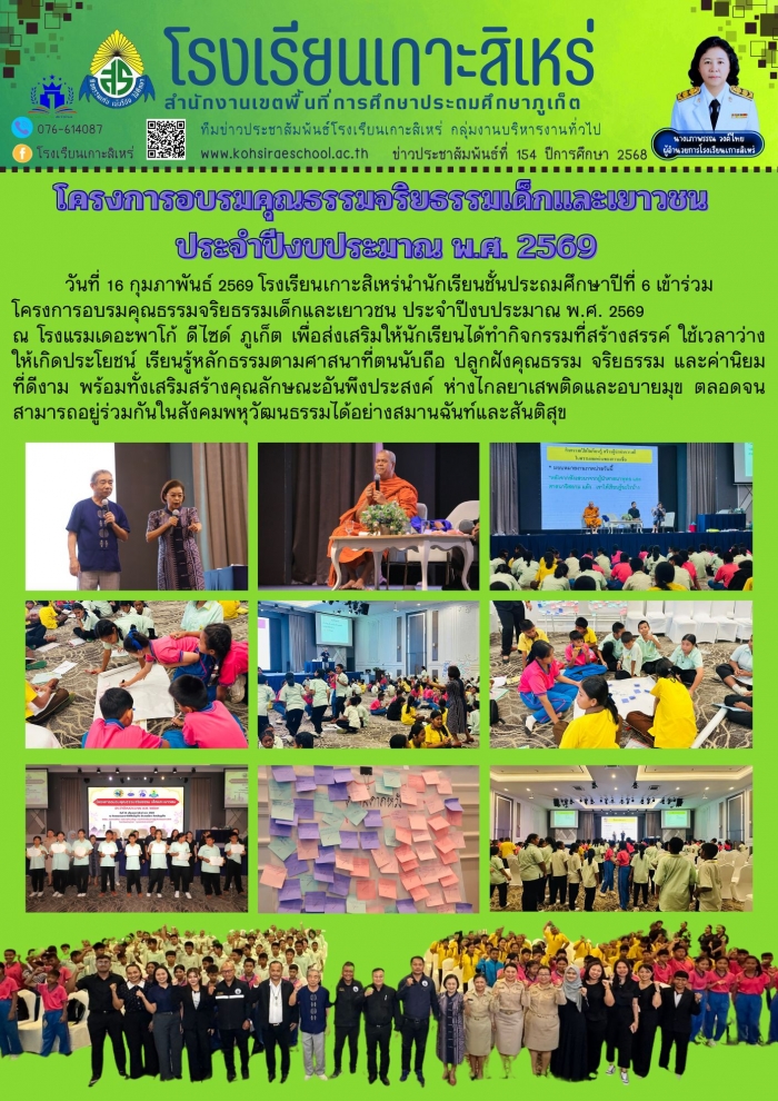 โครงการอบรมคุณธรรมจริยธรรมเด็กและเยาวชน ประจำปีงบประมาณ พ.ศ. 2569
