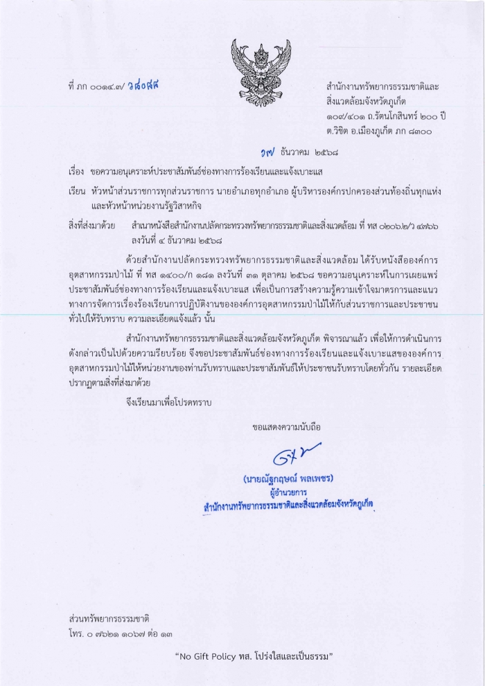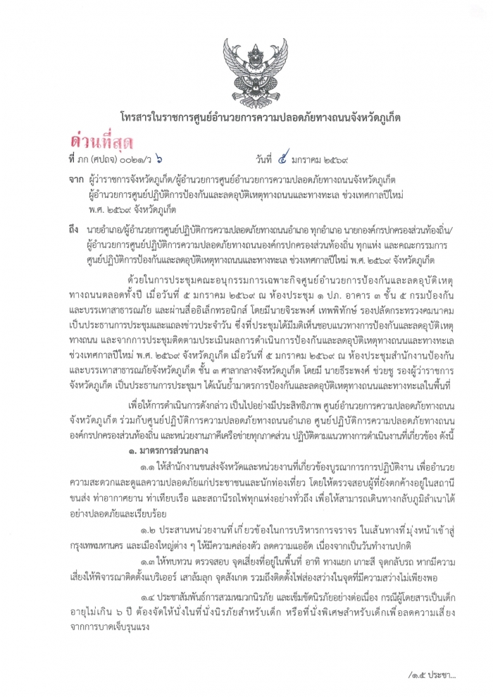 โทรสารในราชการศูนย์อำนวยการความปลอดภัยทางถนนจังหวัดภูเก็ต 5 ม.ค. 2569