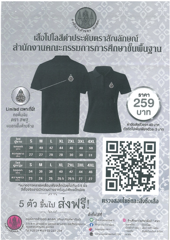 ประชาสัมพันธ์การจำหน่ายเสื้อโปโลสีดำ ประดับตราสัญลักณ์ วำนักงานคณะกรรมการการศึกษาขั้นพื้นฐาน