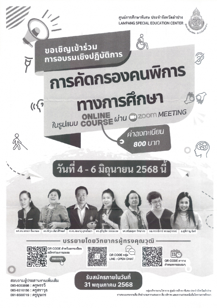 ประชาสัมพันธ์การอบรมเชิงปฏิบัติการหลักสูตรการคัดกรองคนพิการทางการศึกษา
