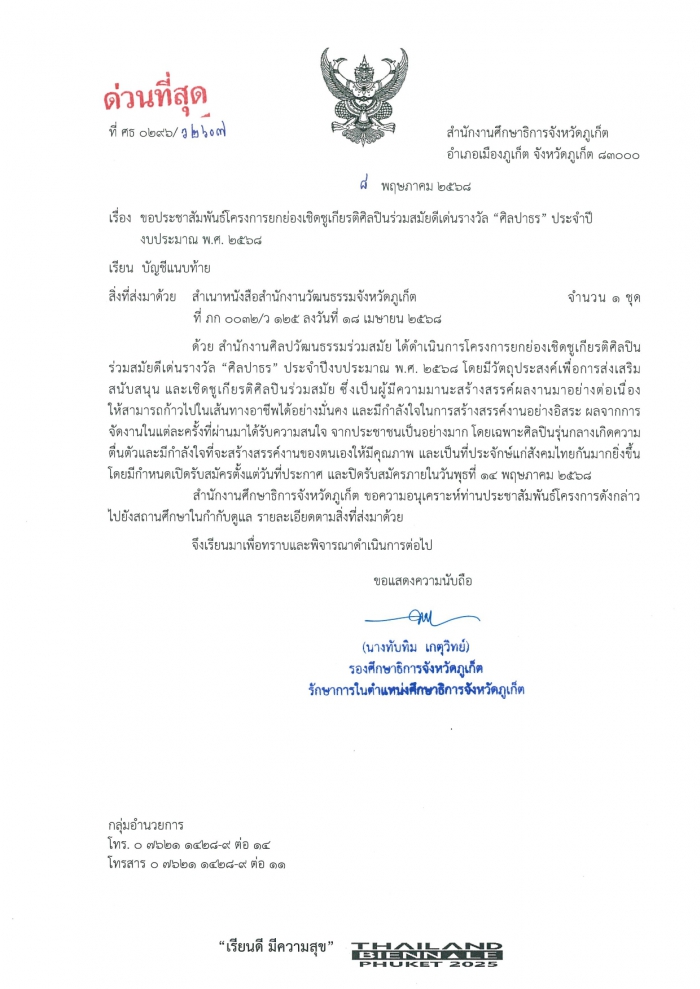 ประชาสัมพันธ์โครงการยกย่องเชิดชูเกียรติศิลปินร่วมสมัยดีเด่นรางวัล ศิลปากร ประจำปีงบประมาณ 2568