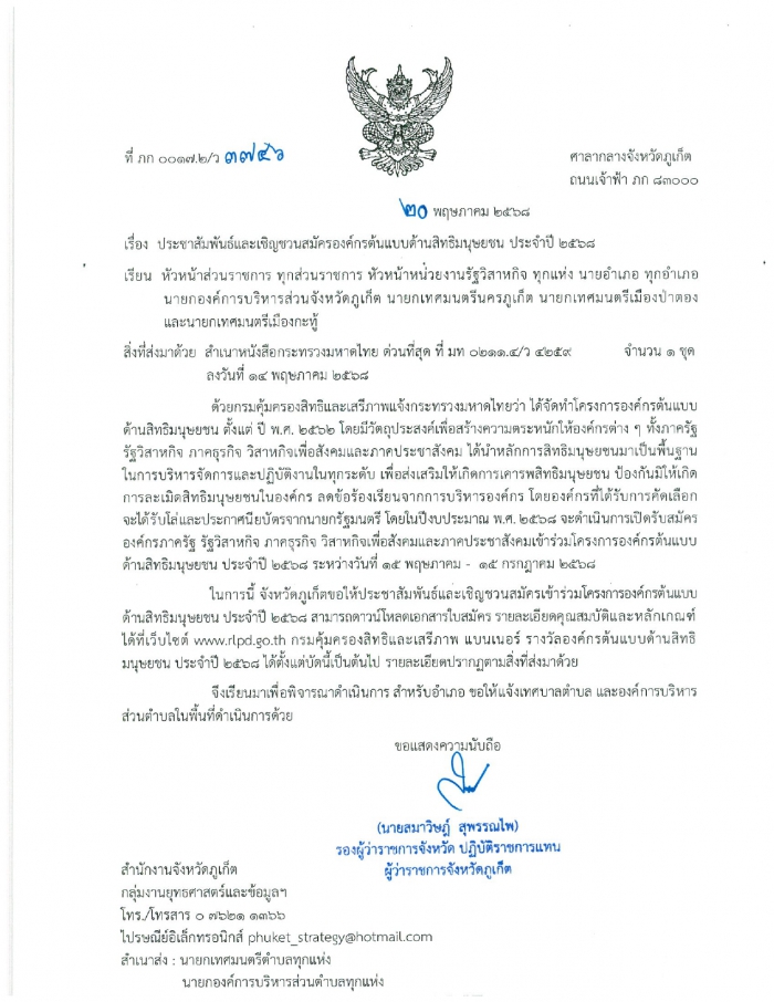 ประชาสัมพันธ์และเชิญชวนสมัครองค์กรต้นแบบด้านสิทธิมนุษยชน ประจำปี 2568