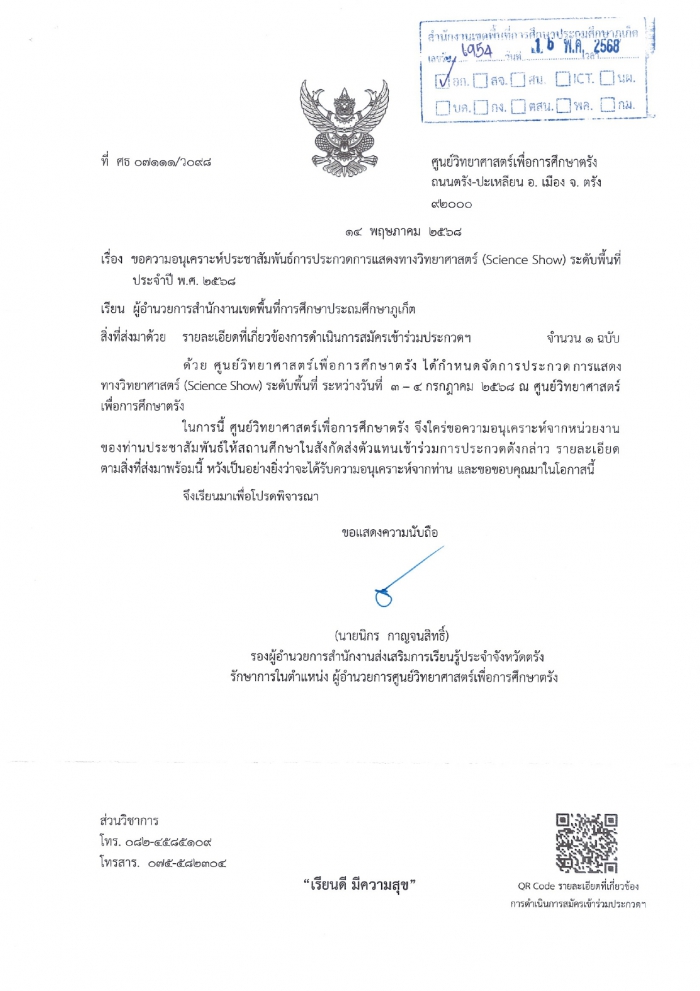 ประชาสัมพันธ์การประกวดการแสดงทางวิทยาศาสตร์