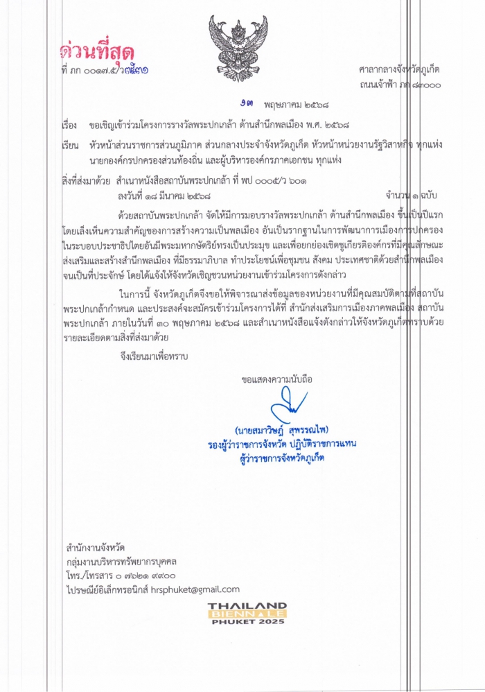 เชิญเข้าร่วมโครงการรางวัลพระปกเกล้า ด้านสำนักพลเมือง พ.ศ. 2568