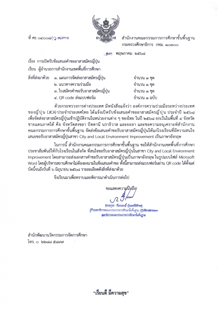 การเปิดรับข้อเสนอคำขออาสาสมัครญี่ปุ่น