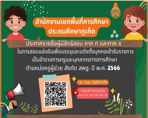 ประกาศรายชื่อผู้มีสิทธิสอบแข่งขันเพื่อบรรจุและแต่งตั้งบุคคลเข้ารับราชการเป็นข้าราชการครูและบุคลากรทางการศึกษา ตำแหน่งครูผู้ช่วย