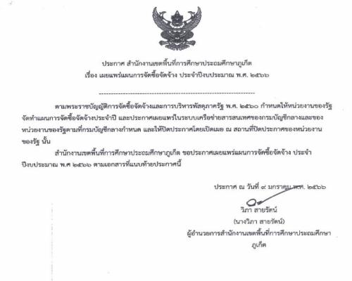 ประกาศ สำนักงานเขตพื้นที่การศึกษาประถมศึกษาภูเก็ต เรื่อง เผยแพร่แผนการจัดซื้อจัดจ้าง ประจำปีงบประมาณ พ.ศ.2566