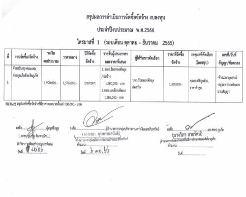 สรุปผลการดำเนินการจัดซื้อจัดจ้าง งบลงทุน ประจำปีงบประมาณ พ.ศ.2566