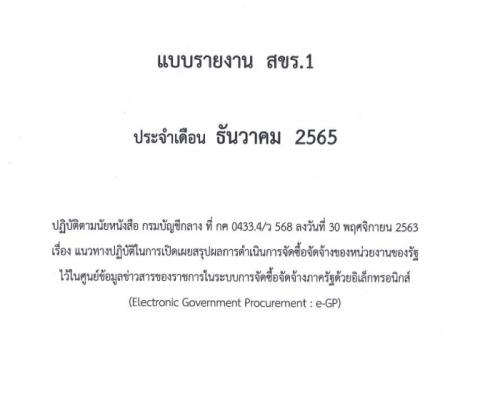 แบบรายงาน สขร. 1 ประจำเดือน ธันวาคม 2565