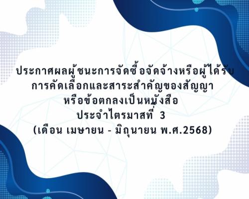 ประกาศผลผู้ชนะการจัดซื้อจัดจ้างหรือผู้ได้รับการคัดเลือกและสาระสำคัญของสัญญา หรือข้อตกลงเป็นหนังสือ ประจำไตรมาสที่ี 3