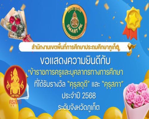 สำนักงานเขตพื้นที่การศึกษาประถมศึกษาภูเก็ต ขอแสดงความยินดีกับข้าราชการครูและบุคลากรทางการศึกษาที่ได้รับรางวัลคุรุสดุดี และคุรุสภา