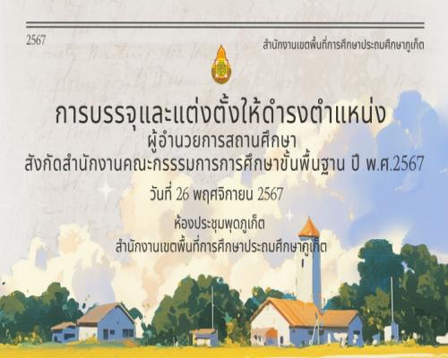 การบรรจุและแต่งตั้งให้ดำรงตำแหน่ง ผู้อำนวยการสถานศึกษา สังกัดสำนักงานคณะกรรรมการการศึกษาขั้นพื้นฐาน ปี พ.ศ.2567