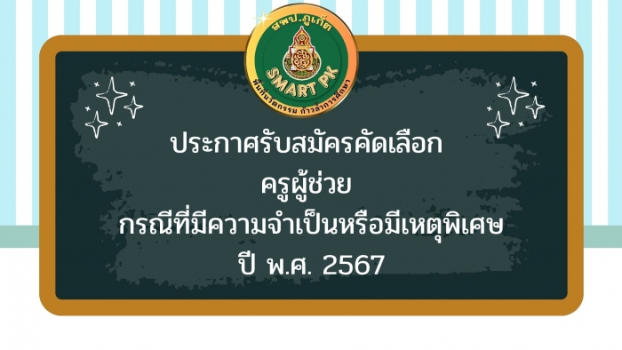 ประกาศรับสมัครคัดเลือก ครูผู้ช่วย กรณีที่มีความจำเป็นหรือมีเหตุพิเศษ ปี พ.ศ. 2567