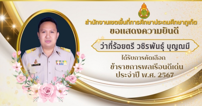 ข้าราชการพลเรือนดีเด่นประจำปี (ระดับประเทศ) พ.ศ. 2567 - ว่าที่ร้อยตรี วชิรพันธุ์ บุญณมี ตำแหน่ง ผู้อำนวยการโรงเรียนถลางพระนางสร้าง