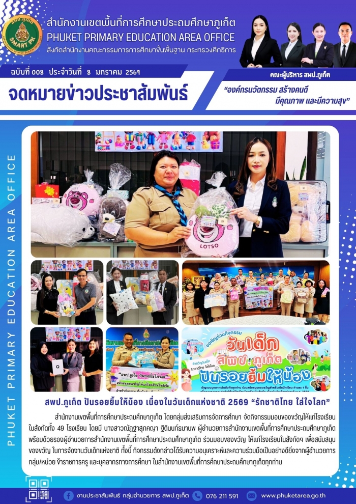 สพป.ภูเก็ต ปันรอยยิ้มให้น้อง เนื่องในวันเด็กแห่งชาติ 2569 รักชาติไทย ใส่ใจโลก