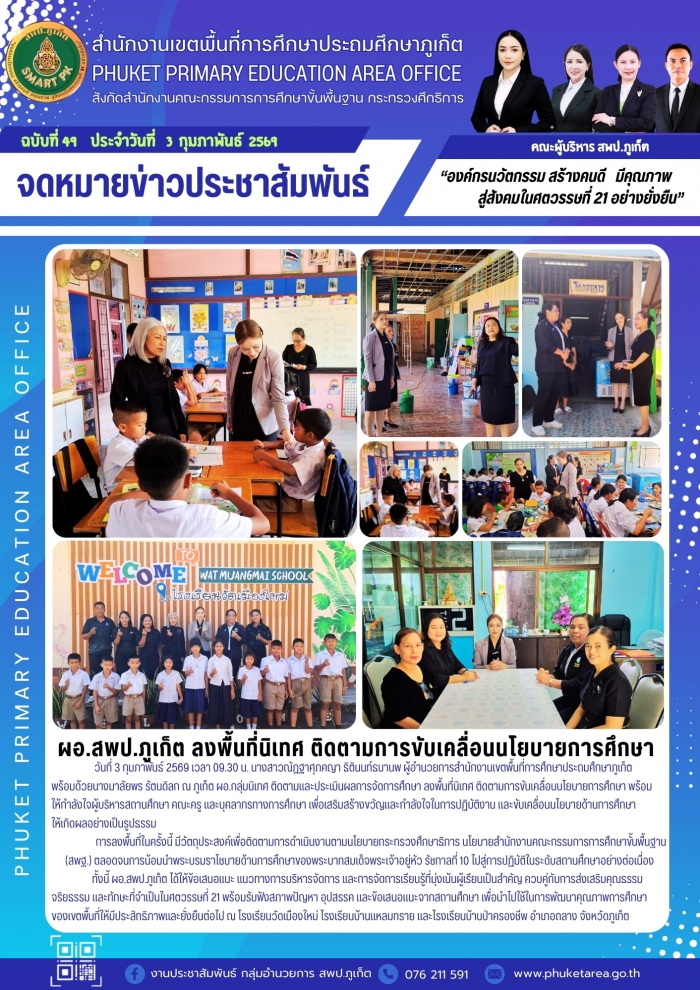 ผอ.สพป.ภูเก็ต ลงพื้นที่นิเทศ ติดตามการขับเคลื่อนนโยบายการศึกษา