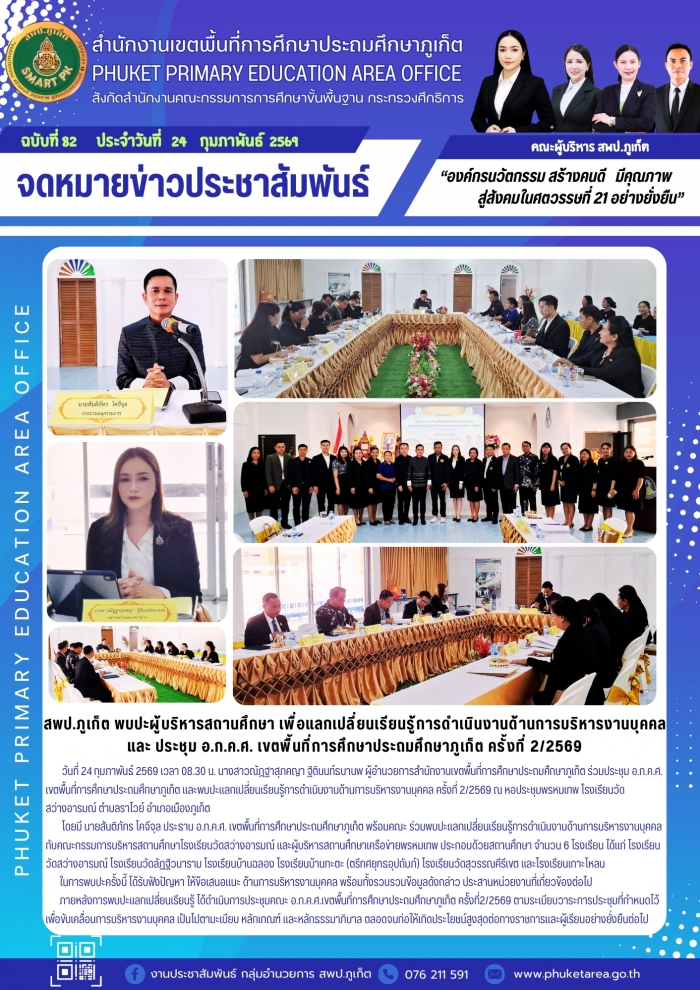 สพป.ภูเก็ต พบปะผู้บริหารสถานศึกษา และ ประชุม อ.ก.ค.ศ. เขตพื้นที่การศึกษาประถมศึกษาภูเก็ต ครั้งที่ 2/2569