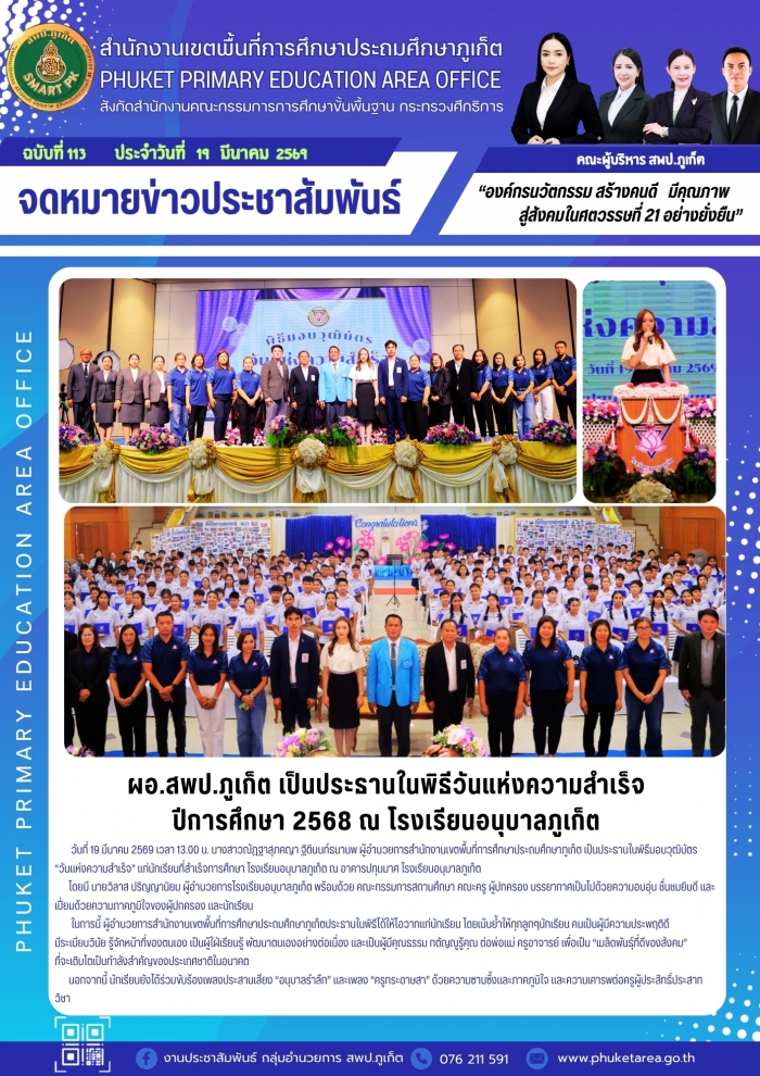 ผอ.สพป.ภูเก็ต เป็นประธานในพิธีวันแห่งความสำเร็จ ปีการศึกษา 2568 ณ โรงเรียนอนุบาลภูเก็ต
