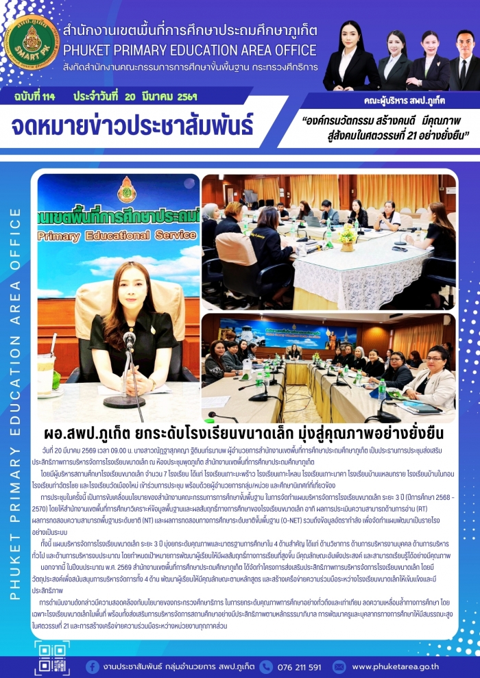 ผอ.สพป.ภูเก็ต ยกระดับโรงเรียนขนาดเล็ก มุ่งสู่คุณภาพอย่างยั่งยืน
