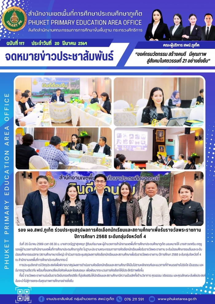 รอง ผอ.สพป.ภูเก็ต ร่วมประชุมสรุปผลการคัดเลือกนักเรียนและสถานศึกษาเพื่อรับรางวัลพระราชทาน ปีการศึกษา 2568 ระดับกลุ่มจังหวัดที่ 4